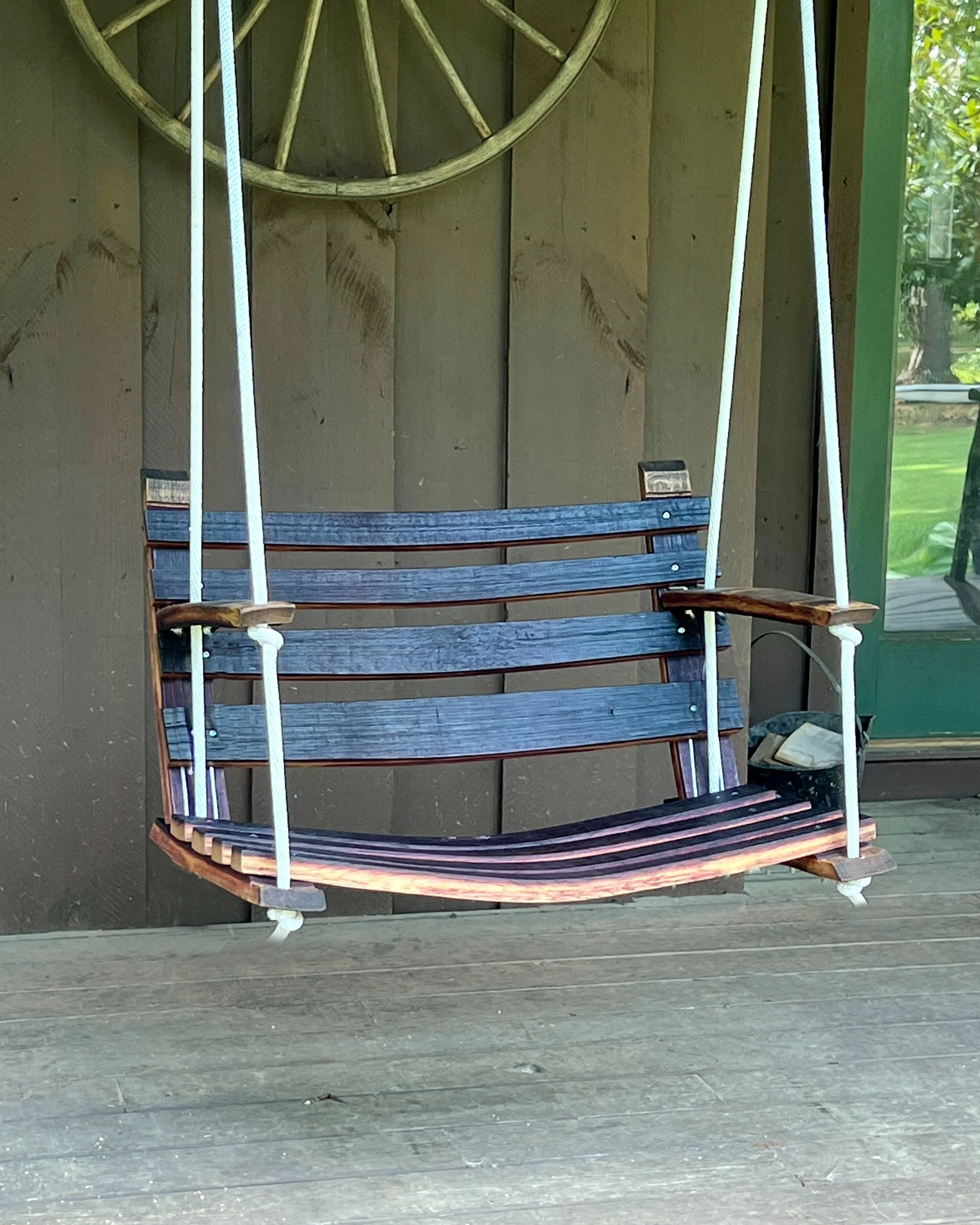 “Can you make a rope swing out of wine barrel staves?” You bet! This swing has been described as beautiful, comfortable, and peaceful! Swing all day without a care in the world. The only thing that would make it better would be a built-in pillow!